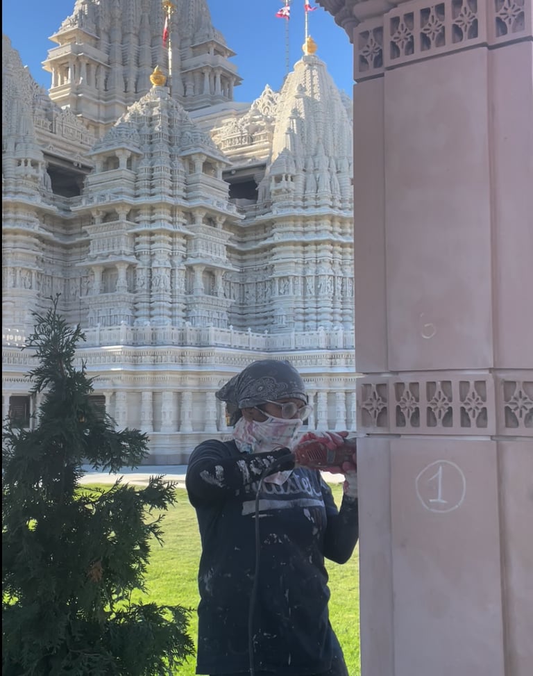 My own journey here was a transformation — from “I” to “me” to “ours.” For a year and a half, I lived in the rhythm of stone: chiseling, sanding, shaping, lifting, aligning. In our team of 35, we assembled thousands of feet of carved stone railings — the ‘jakti’ — piece by piece, like stitching prayers into architecture. The work was physical, demanding, and deeply purifying lifting stones, bending steel, pouring concrete, and most importantly, unlearning the boundaries of self.